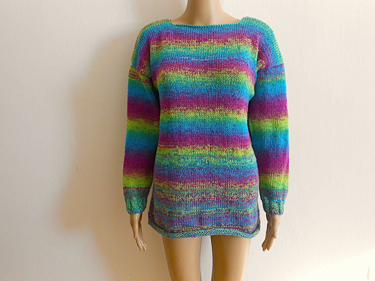 Dámský ručně pletený svetr, velikost M,L: délka 62 cm, šířka 50 cm - pruží, vnitřní délka rukávu 46 cm. Doporučuji jemné praní a sušit volně položené.