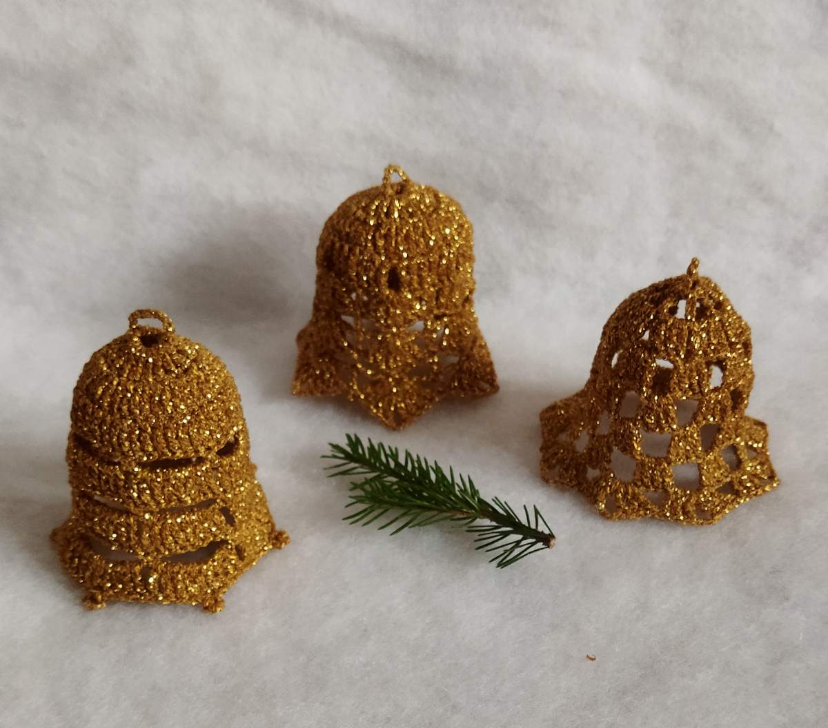 Zvonky jsou uháčkovány z vysoce kvalitní metalizované zlaté efektní příze německé výroby. Jsou pečlivě naškrobeny, aby krásně držely tvar. Výška zvonků je cca 6cm. Skvěle se hodí jako ozdoba na vánoční stromeček, věnec nebo jako přízdoba k dárkům. Nebo ho můžeme volně postavit na vánoční stůl nebo okno. Fantazii se meze nekladou.