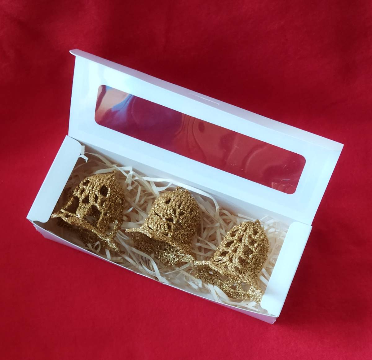 Zvonky jsou uháčkovány z vysoce kvalitní metalizované zlaté efektní příze německé výroby. Jsou pečlivě naškrobeny, aby krásně držely tvar. Výška zvonků je cca 6cm. Skvěle se hodí jako ozdoba na vánoční stromeček, věnec nebo jako přízdoba k dárkům. Nebo ho můžeme volně postavit na vánoční stůl nebo okno. Fantazii se meze nekladou.