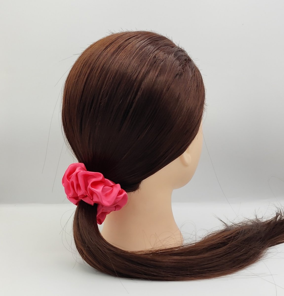 4x saténovou scrunchie gumičku velikost L - v klidovém stavu průměr 10 cm - šířka saténové látky 4 cm, uvnitř se silnou a pružnou gumou.