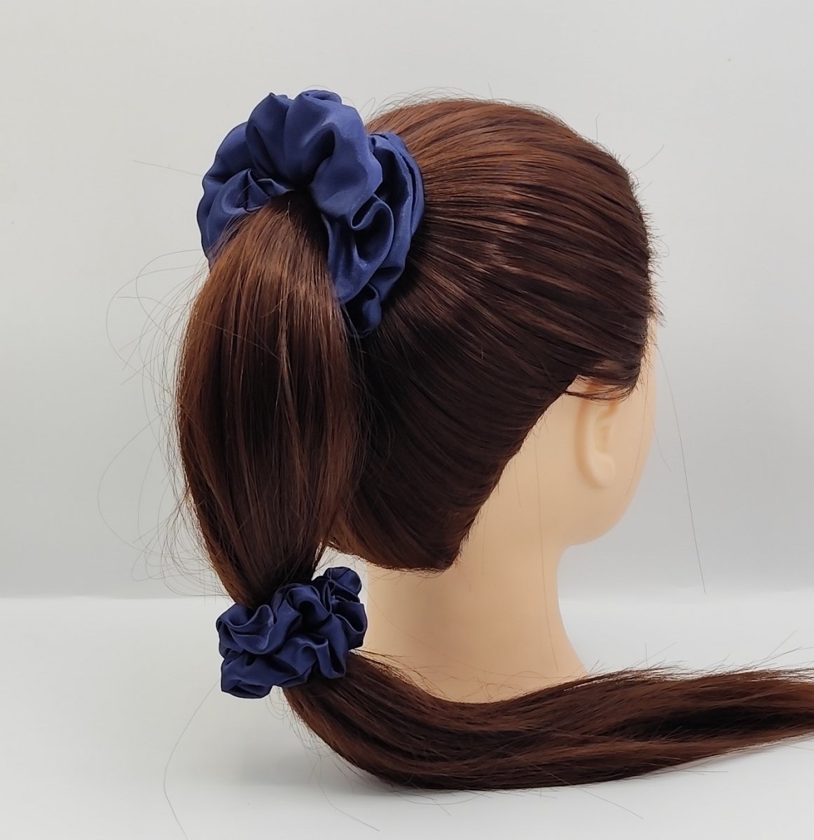 3x saténovou scrunchie gumičku velikost L-klasik - v klidovém stavu průměr 12 cm - šířka látky 4 cm, uvnitř s úzkou a pružnou gumou.