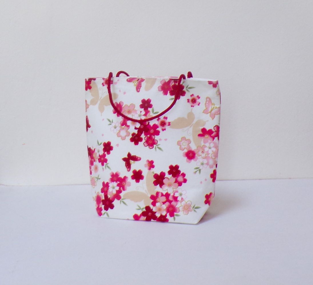 Výška 21 cm, šířka na horním okraji 20 cm, šířka dna 12 cm, hloubka 7 cm.