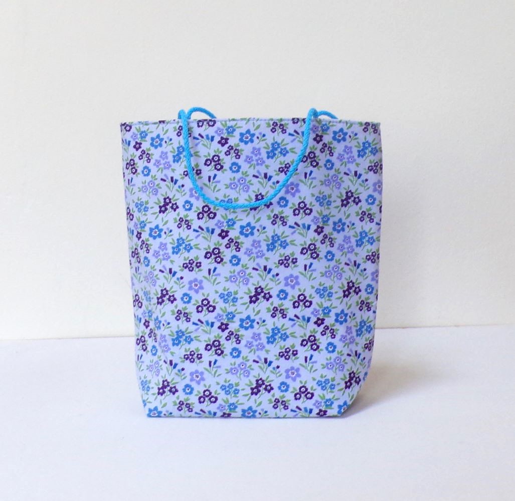 Dárková taška světle modrá s květinkami - 25 x 24 cm