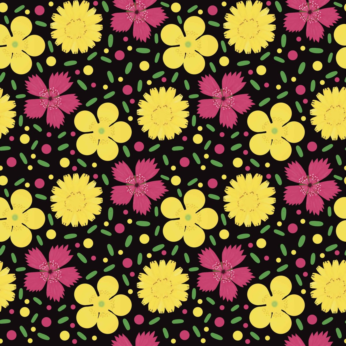 Papírová darovací ručně skládaná obálka s potiskem autorskou grafikou s motivem drobných kvítků ve žluté a sytě růžové barvě na černém pozadí. Obálka z bílého papíru gramáže 160 g/m2 s inkoustovým potiskem.