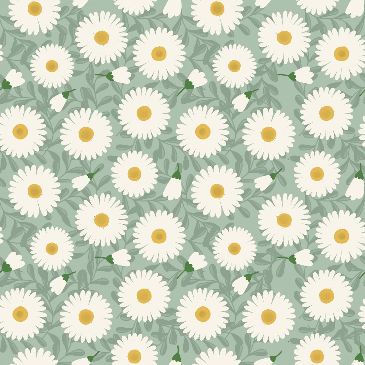 Papírová darovací ručně skládaná obálka s potiskem autorskou grafikou - bílé kopretiny s poupaty a listy na světle šedo-zeleném pozadí. Obálka z bílého papíru gramáže 160 g/m2 s inkoustovým potiskem.