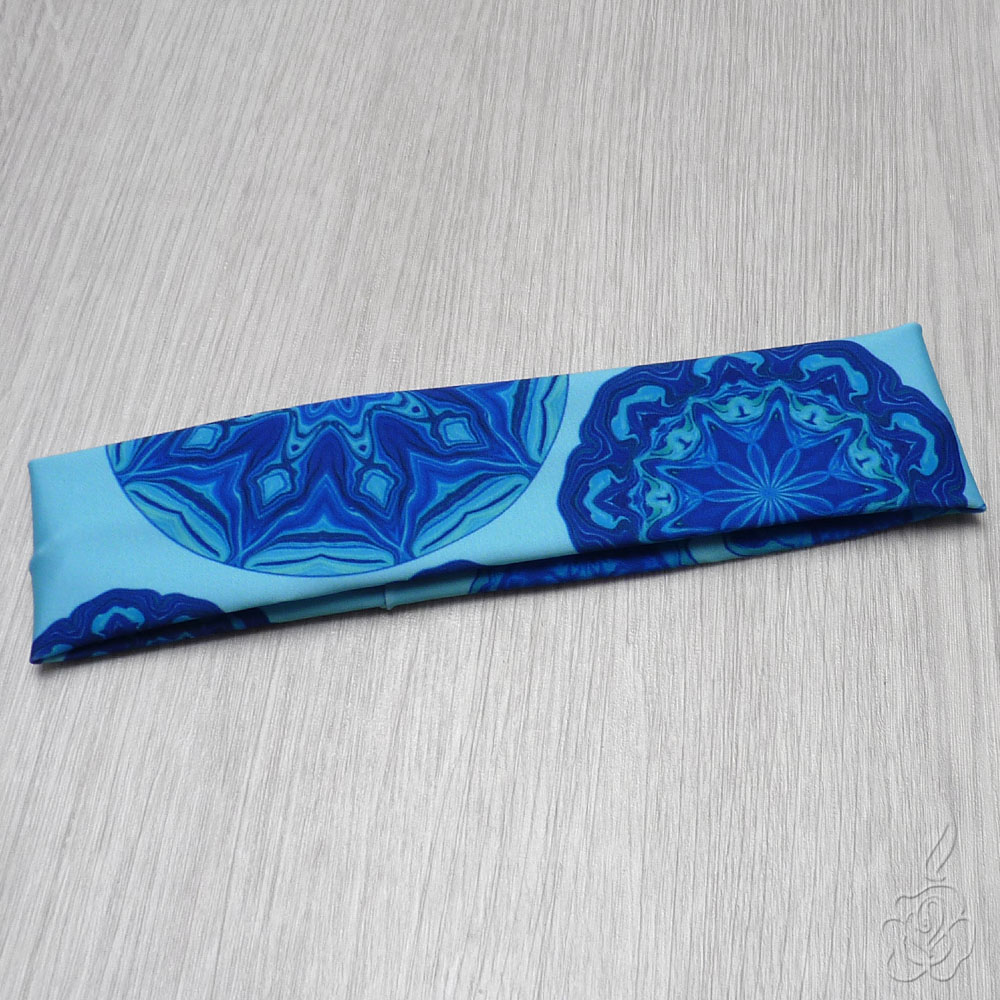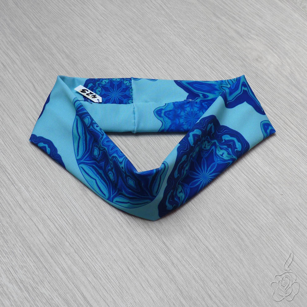 Dětská čelenka z pružné látky s výrazným vzorem.