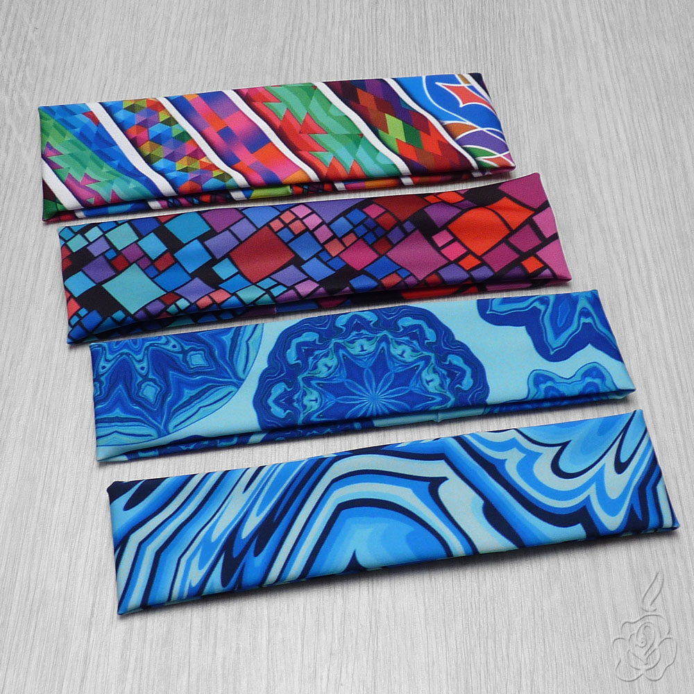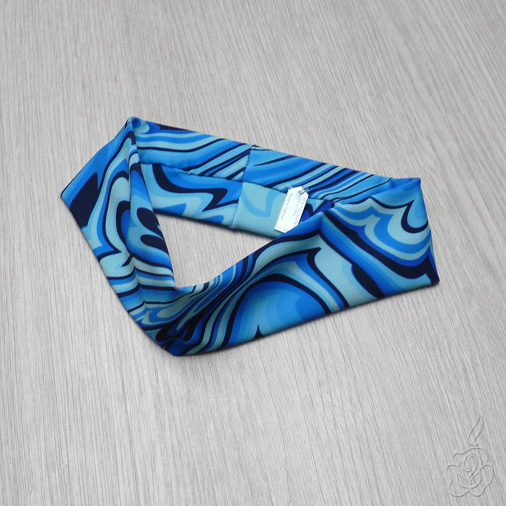 Dětská čelenka z pružné látky s výrazným vzorem.