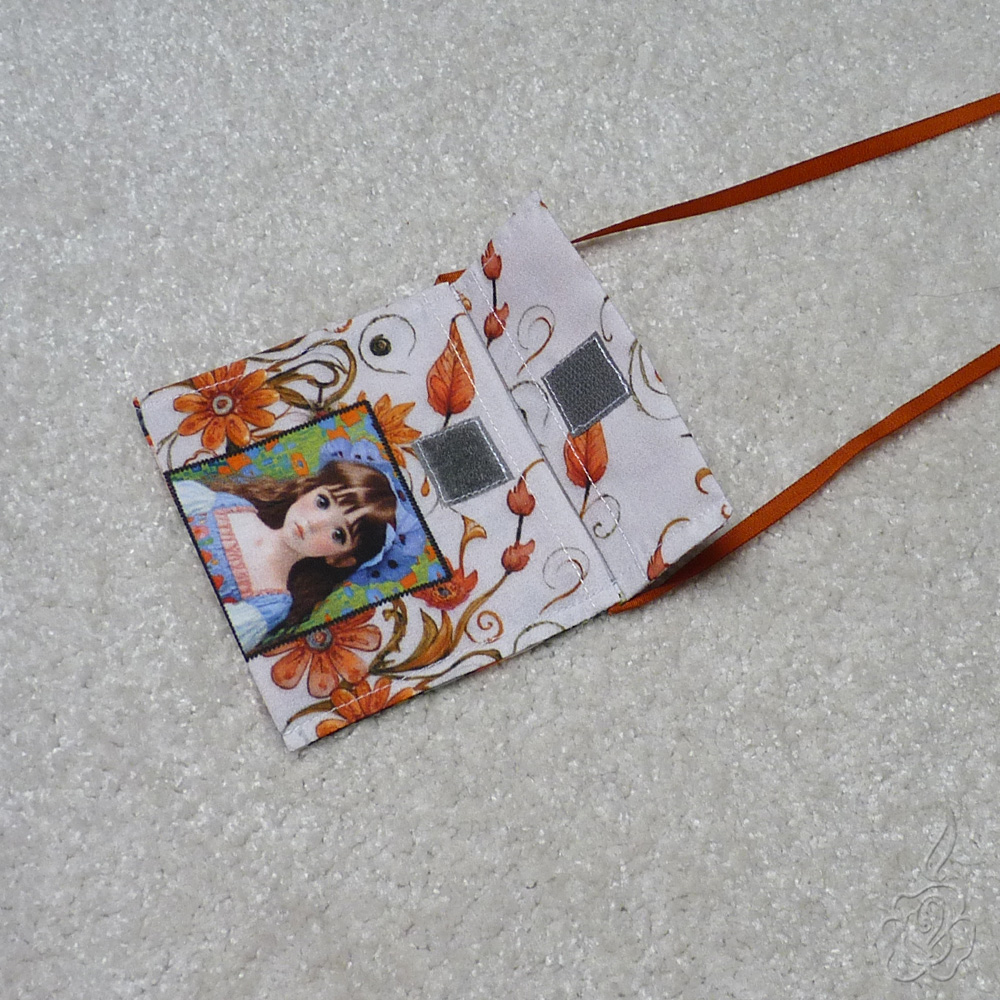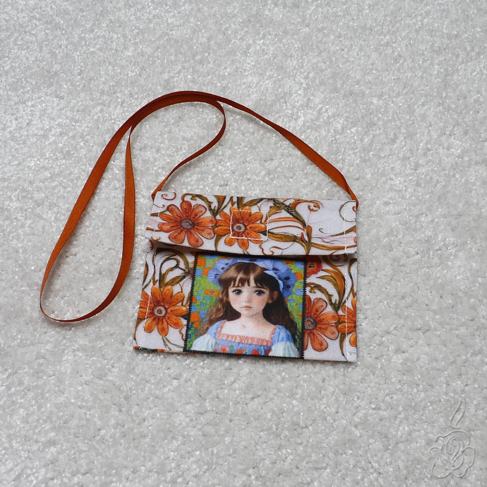 Jednoduchá taštička s klopnou na suchý zip. Dá se nosit na krk nebo přes rameno.
