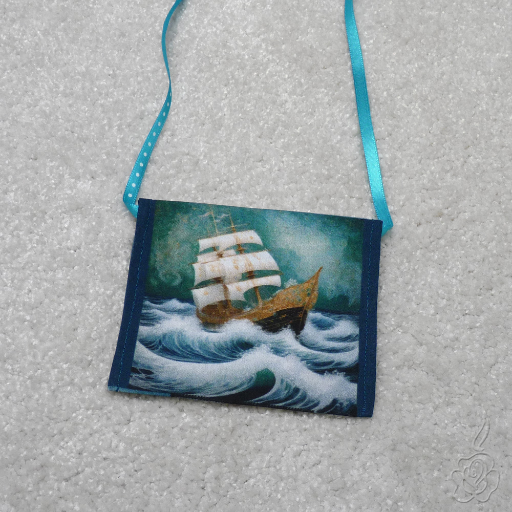 Taštička je ušita z bavlněné látky, jako šňůrka je použita taftová stužka.