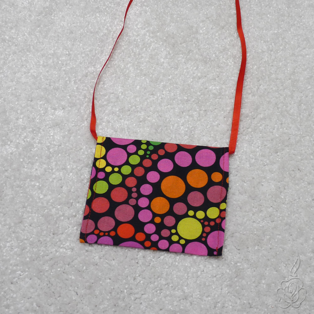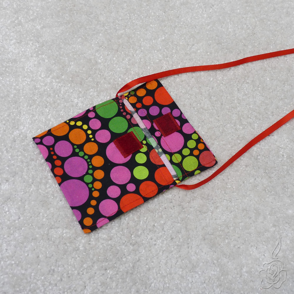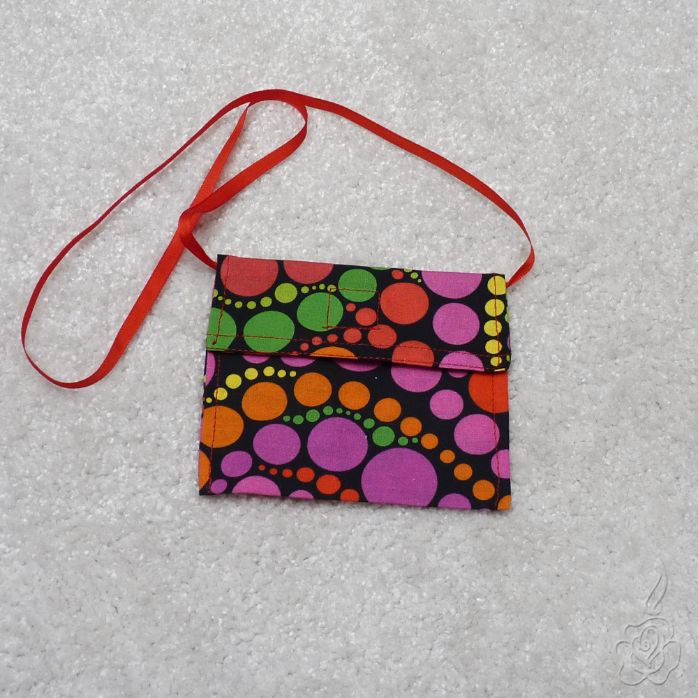 Jednoduchá taštička s klopnou na suchý zip. Dá se nosit na krk nebo přes rameno.
