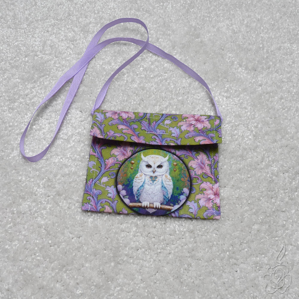 Jednoduchá taštička s klopnou na suchý zip. Dá se nosit na krk nebo přes rameno.