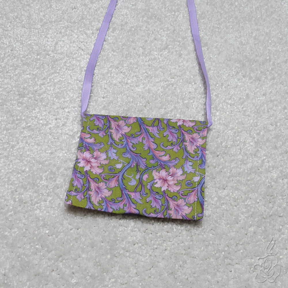 Taštička je ušita z bavlněné látky, jako šňůrka je použita taftová stužka.