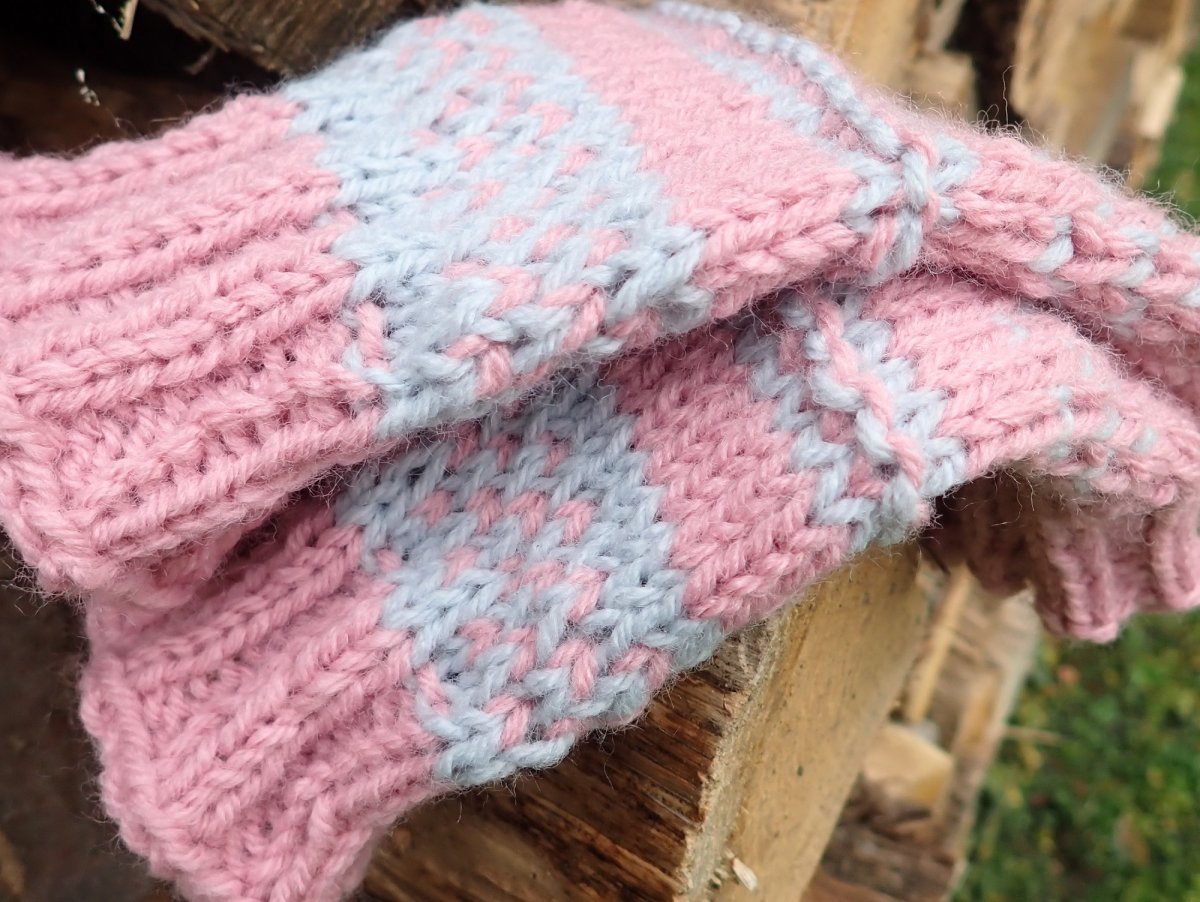 Použitý materiál: acryl zahraniční výroby. Pleteno na čtyřech jehlicích beze švů.