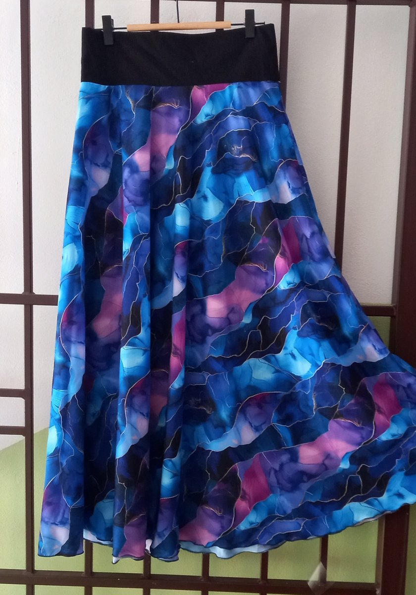 Dlouhá půlkolová sukně - modrofialový mramor