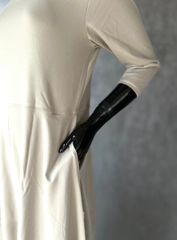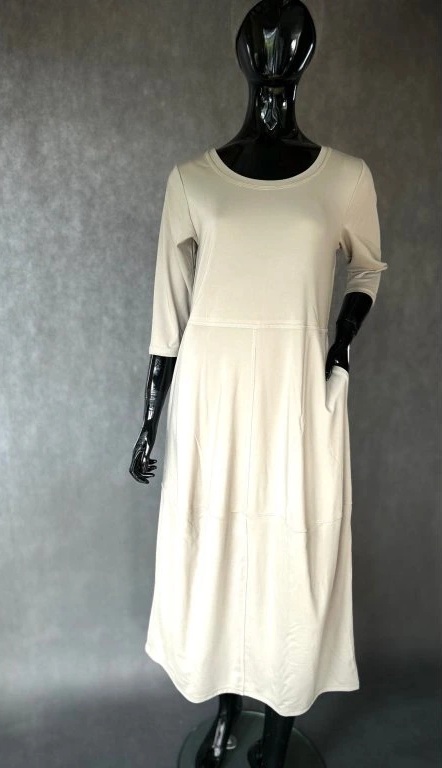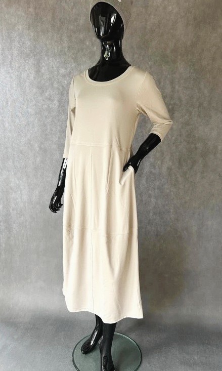 Naprosto pohodlné šaty pro běžné, ale i slavnostnější nošení, tentokrát jsme zvolili materiál Punto di Roma, který je neuvěřitelně splývavý, trochu lesklý, v módní barvě s 3/4 rukávem. Vřele doporučujeme, máme vyzkoušeno, že i nějaké to kilo se v nich ztratí.