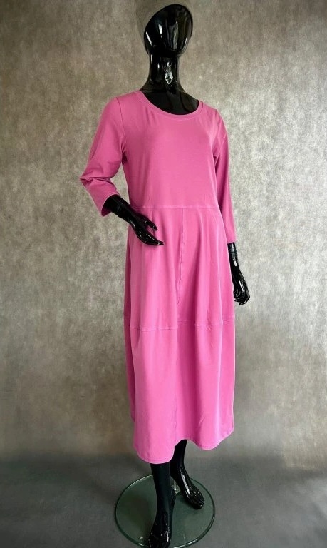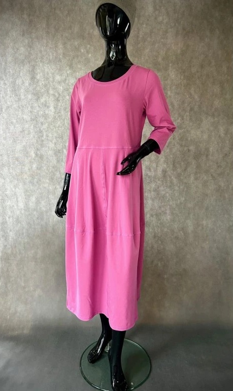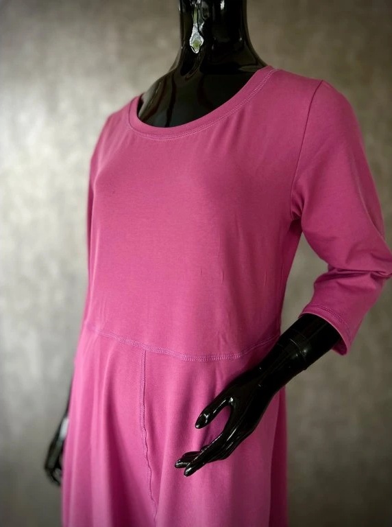 Naprosto pohodlné šaty pro běžné nošení z úpletu, v módní barvě s 3/4 rukávem. Vřele doporučujeme, máme vyzkoušeno, že i nějaké to kilo se v nich ztratí.