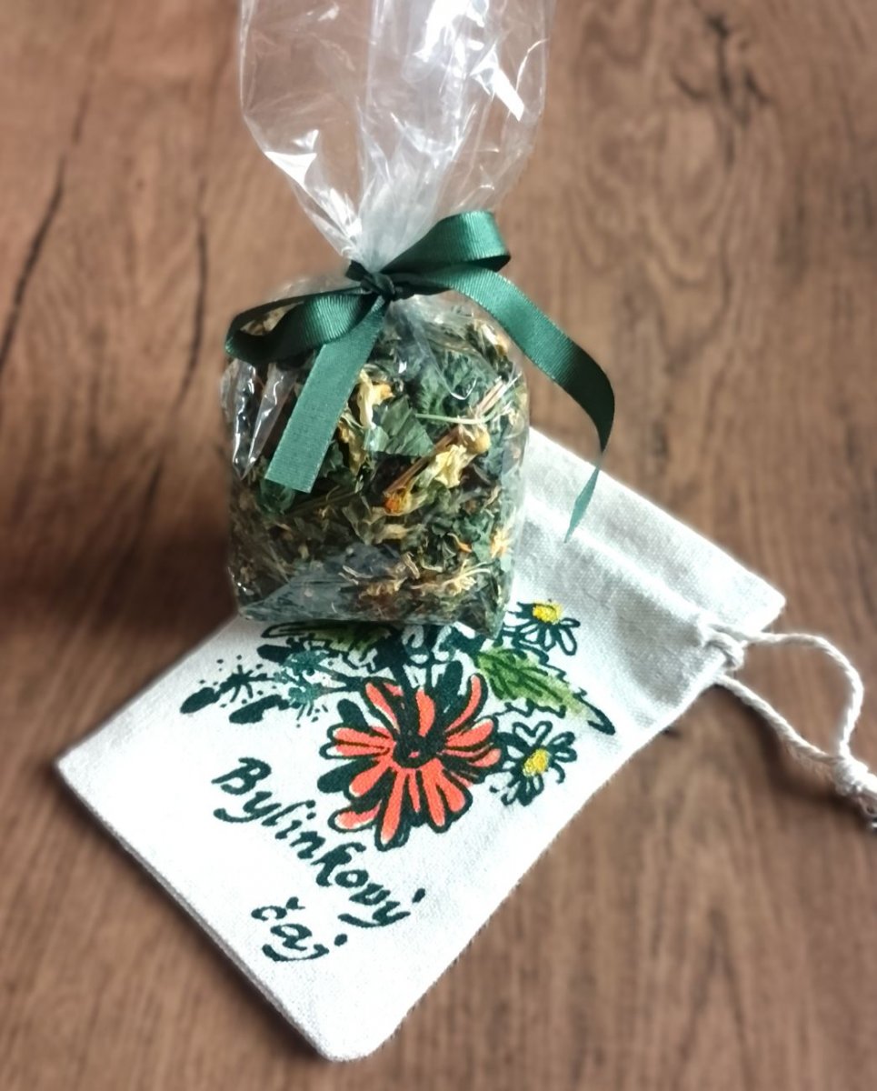 Voňavý osvěžující čaj je směsí měsíčku lékařského, máty peprné, listů maliníku a ostružiníku, hluchavky bílé, kopřivy, jitrocele kopinatého, meduňky lékařské, lnice obecné a trochy levandule.