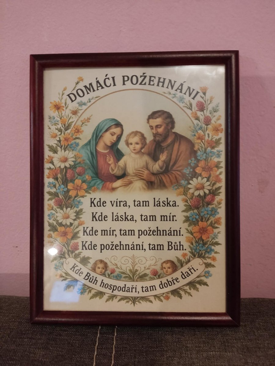 DOMÁCÍ POŽEHNÁNÍ obrázek pro klid a ochranu rodinný dárek, na chalupu do bytu , nádech časů našich babiček ,VEL: 22x15 v dřevěném zaskleném rámečku možno pověsit i opřít. v tmavém nebo světlém rámečku