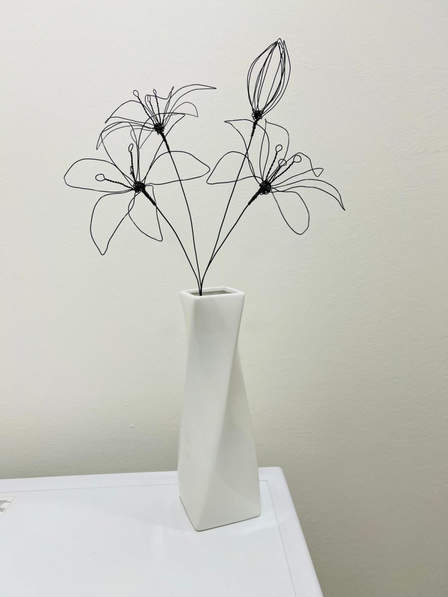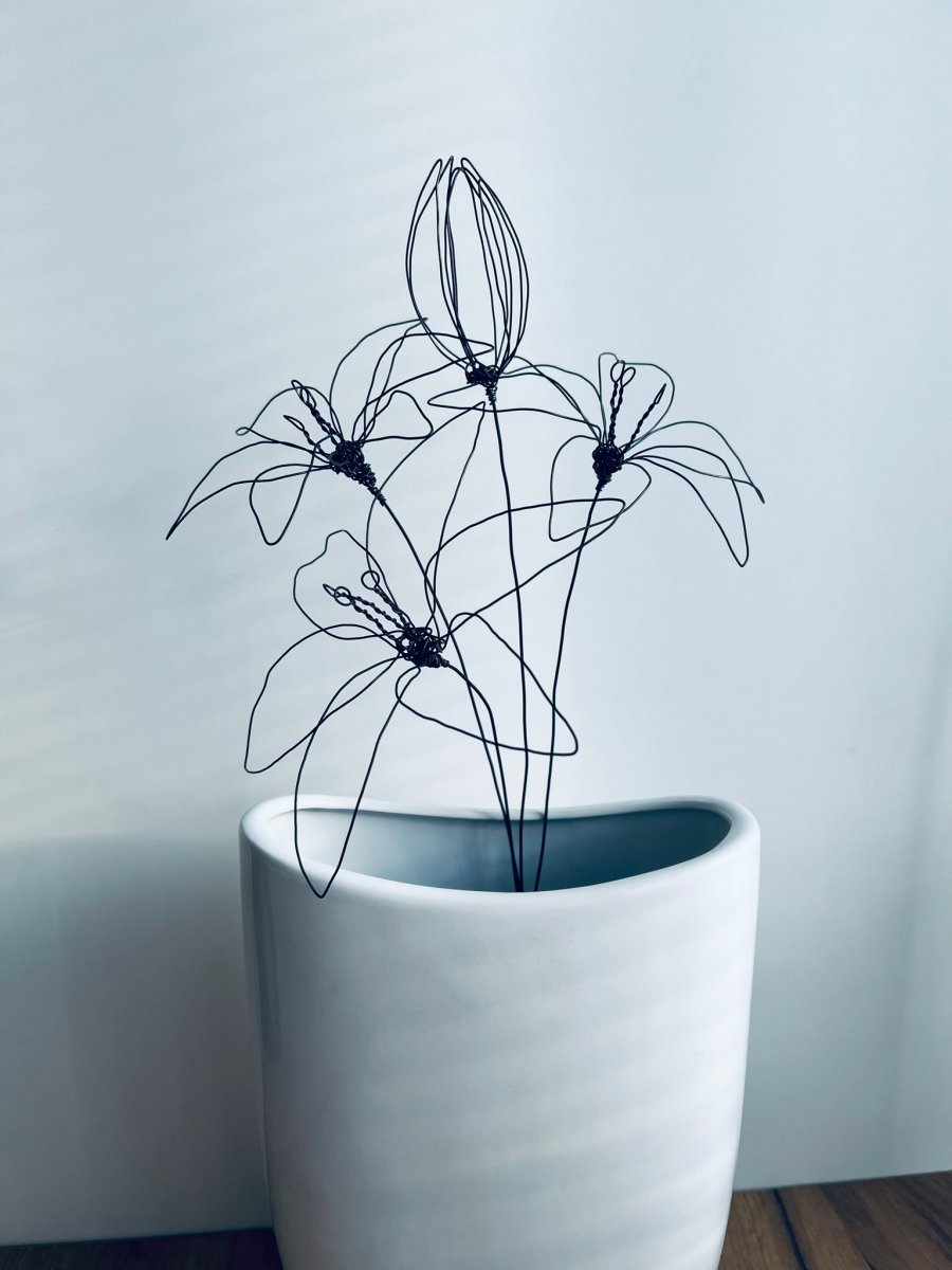 Elegantní a jedinečná lilie, ručně vytvořená z drátku, se stane ozdobou každého interiéru. Se svou výškou 40 cm působí jemně, ale zároveň nepřehlédnutelně. Povrch je ošetřen ochranným lakem proti korozi, takže si svůj šarm uchová po dlouhá léta.