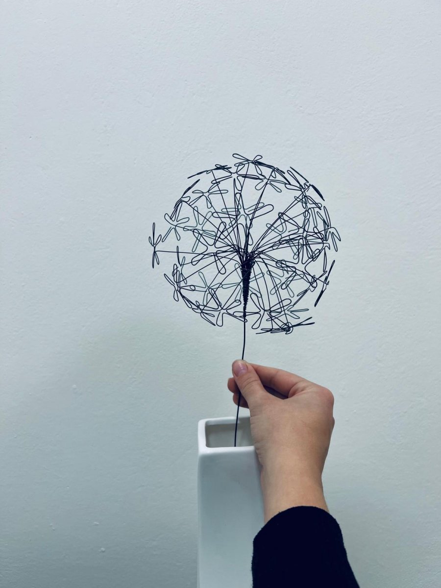 Ručně vyráběná květina z černého drátku. Vhodná jako dekorace do vázy. Výška cca 40 cm, průměr cca 17 cm.