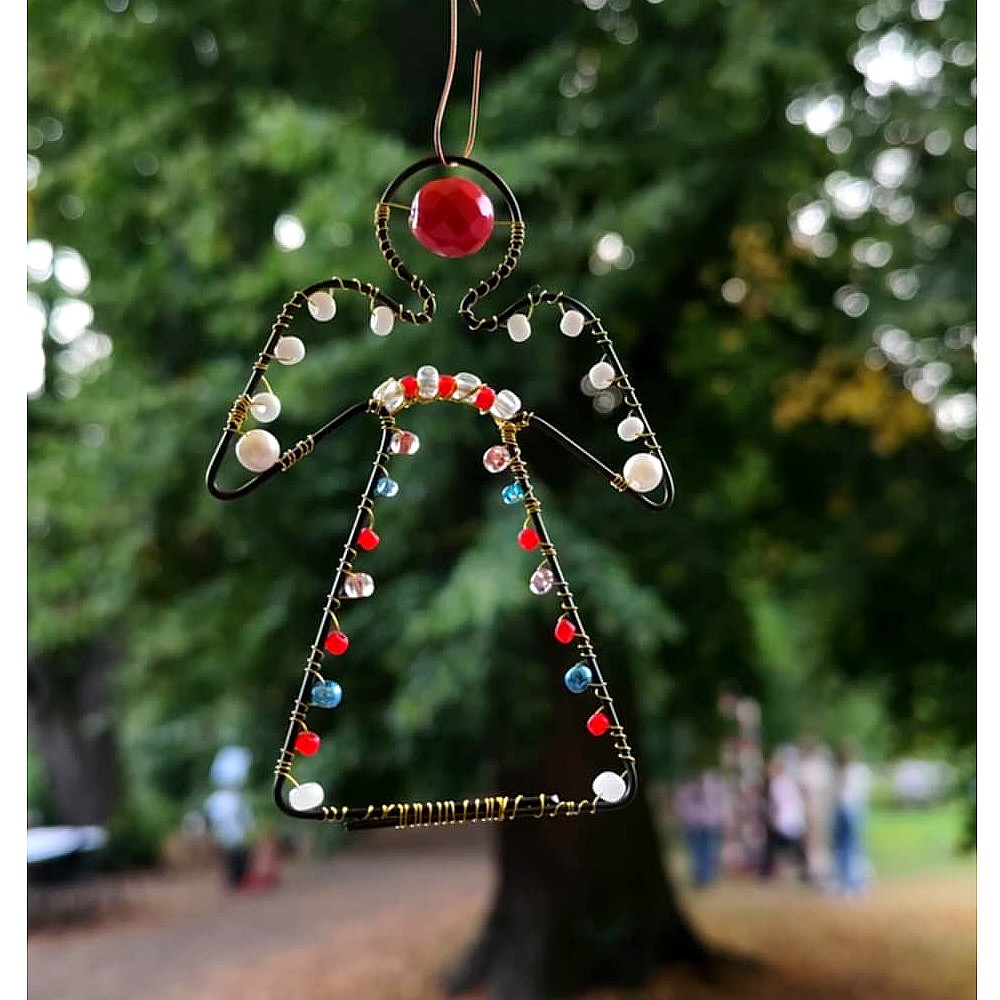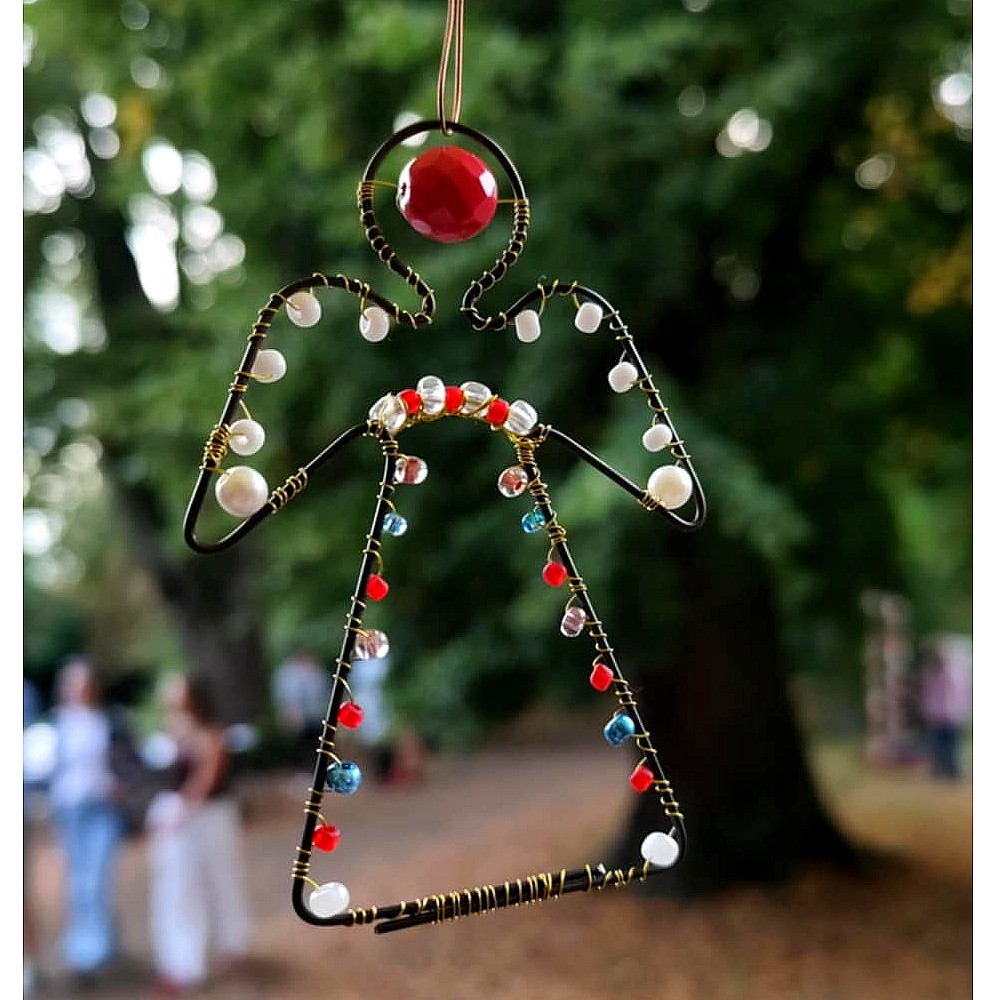 Drátovaný anděl s barevnými korálky, je vyrobený technikou drátování.