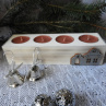 Svícen z dřevěného masívu na čajové svíčky (! Vejde se normální 4 hod. čajovka ale doporučuji svíčky trošku menšího průměru tj cca 3h svíčka) se zvýrazněnými kresbami dřeva, zimními motivky nejen pro adventní pohodu a zdobené domečky se 4 vonnými svíčkami