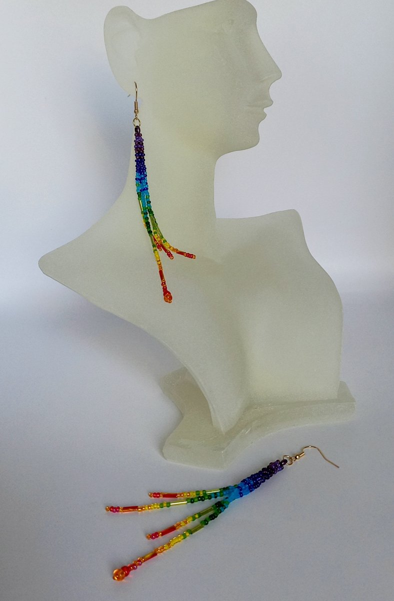 Duhové náušnice s extrémně dlouhými třasněmi - 13,5 cm i s afroháčkem.