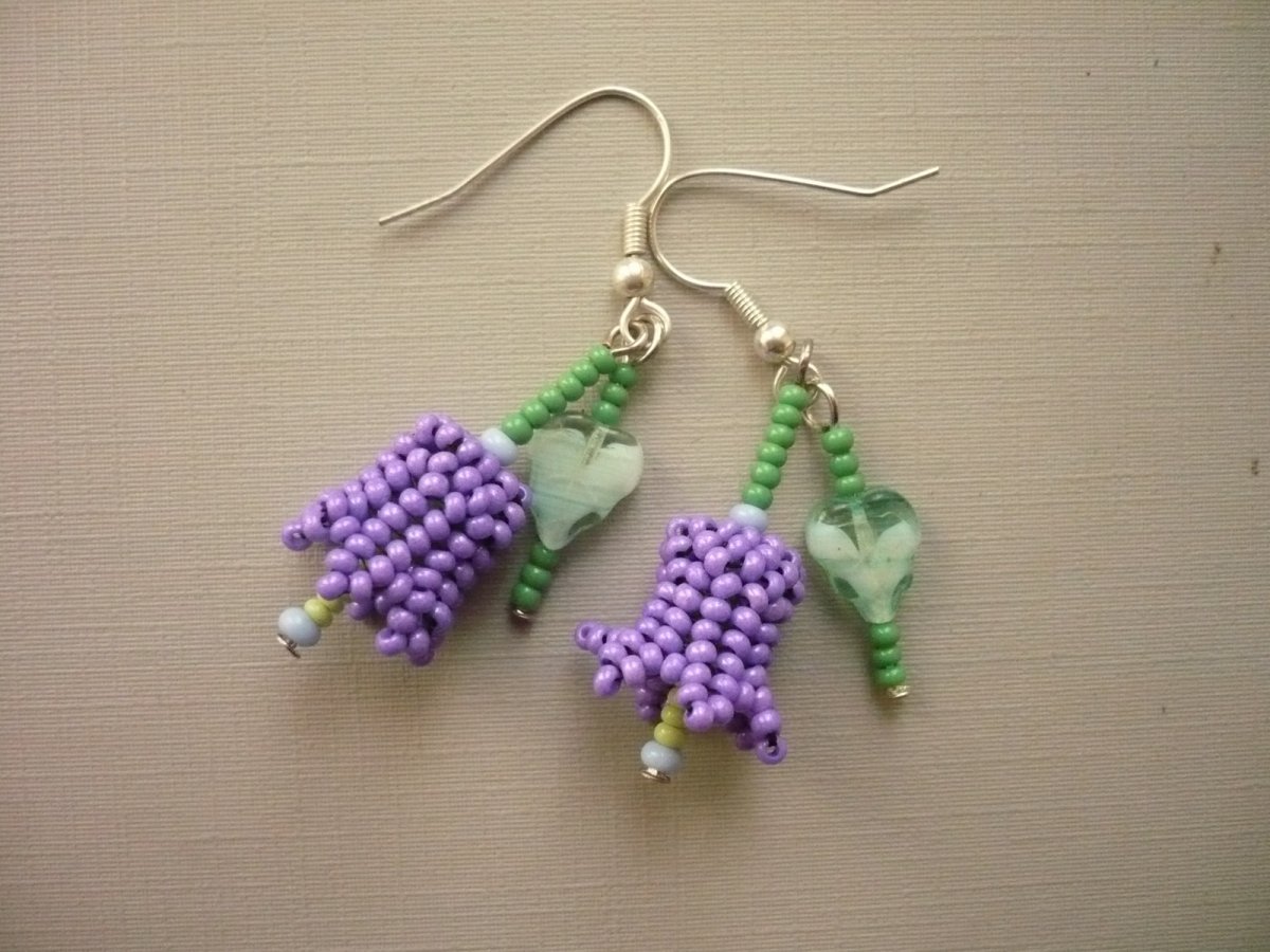 Náušnice z rokajlových korálků, doplněno o skleněné mačkané korálky. Zavěšeno na afroháčku v barvě stříbra. Délka 3,5 cm bez háčku.