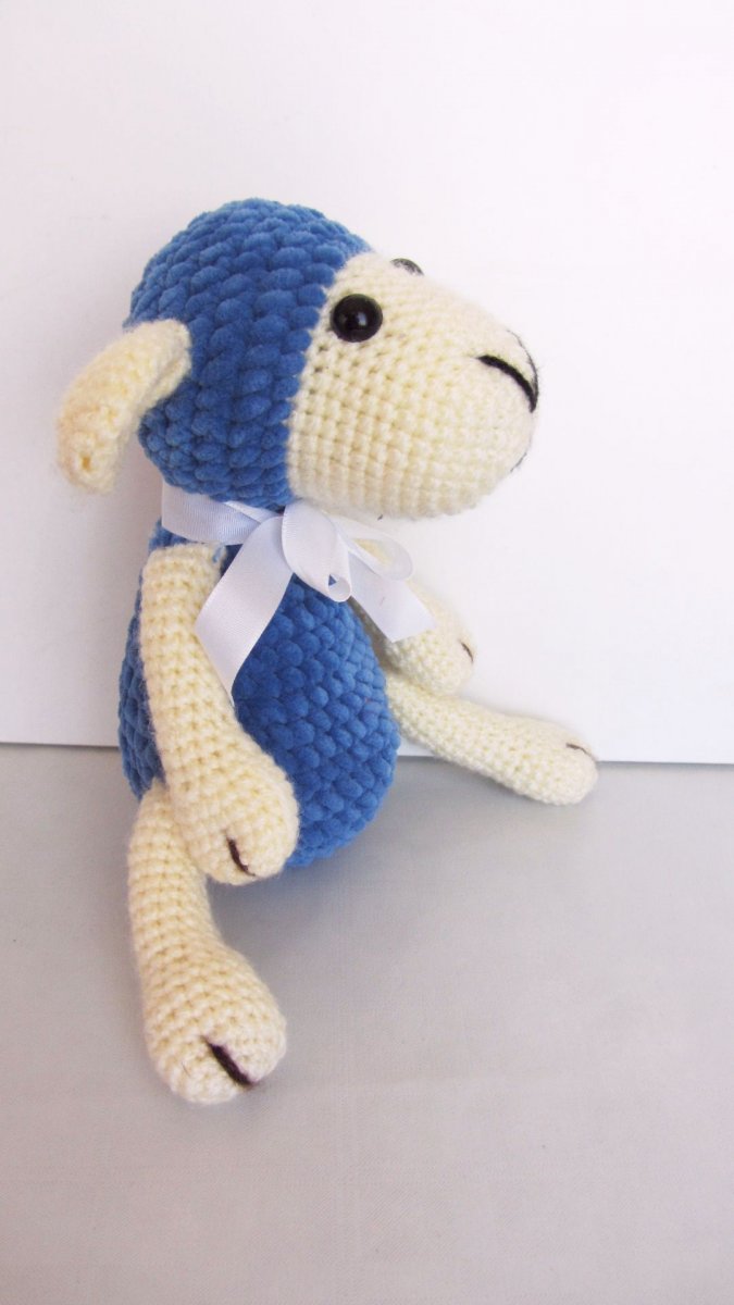 Háčkované hračka ovečky je zhotovena z měkké 100% polyesterové příze žinylky a akrylové příze. Ovečka je vyplněná PES kuličkami, které jsou hyperalergenní a neslehávají se. Nohy má přišité, oči jsou bezpečnostní.Velikost ovečky je 24 cm, kolem krku má uvázanou mašličku.