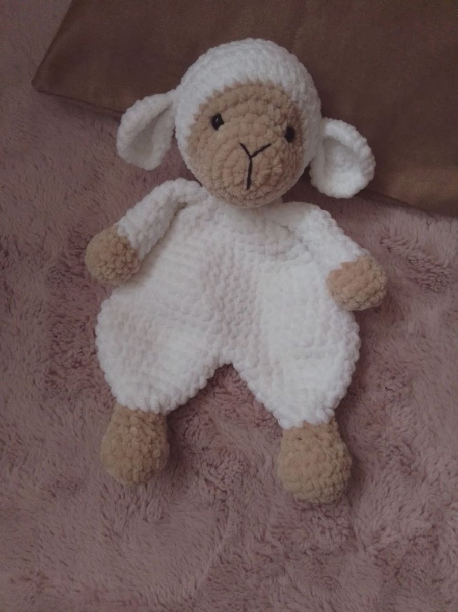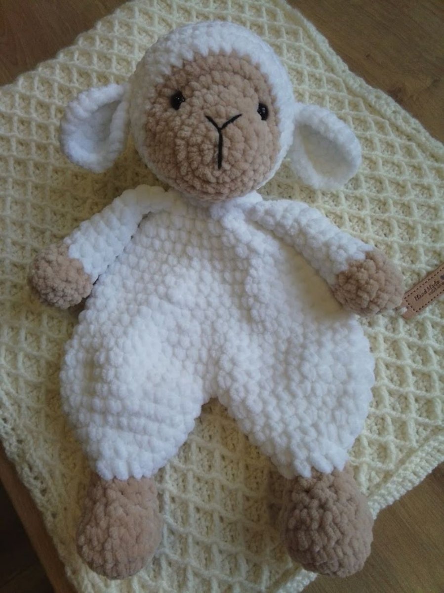 Háčkovaná ovečka - usínáček, muchláček pro miminka z měkoučké žinylkové (polyesterové) příze, výška 33, šířka 24 cm. Doporučuji jemné ruční praní, nesušit v sušičce.