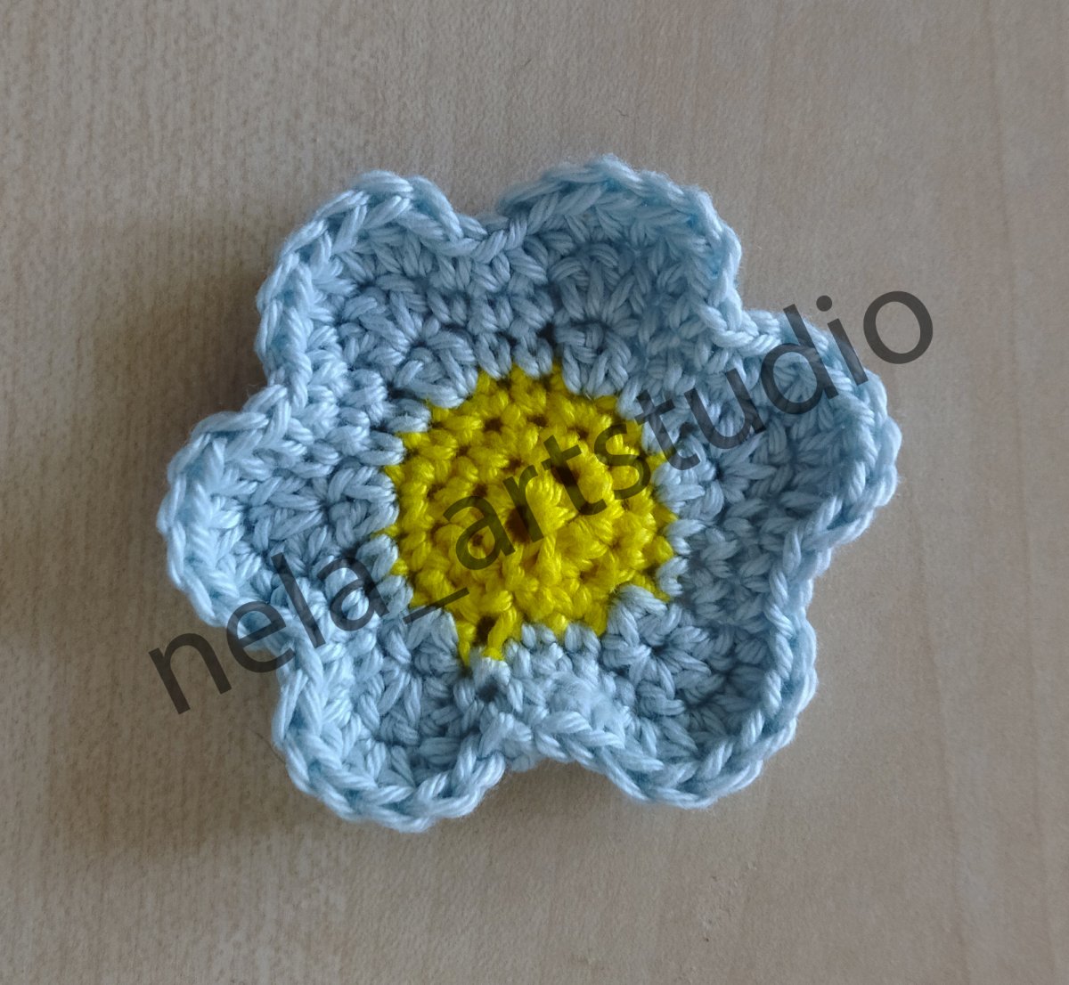 Ručně háčkovaná kytička. Ideální jako stylový doplněk nebo dekorace. Vhodné k ozdobení oblečení (čepic, šatiček, svetříků, kabelek apod.)