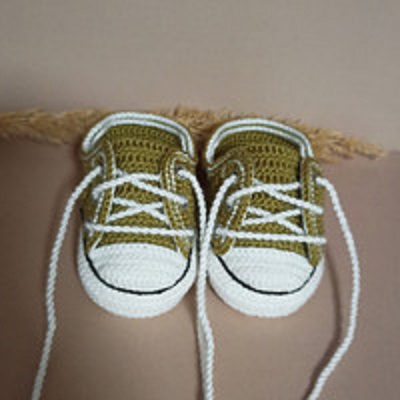 Ručně háčkované tenisky s délkou chodidelka 9 cm. Háčkované z akrylové příze.