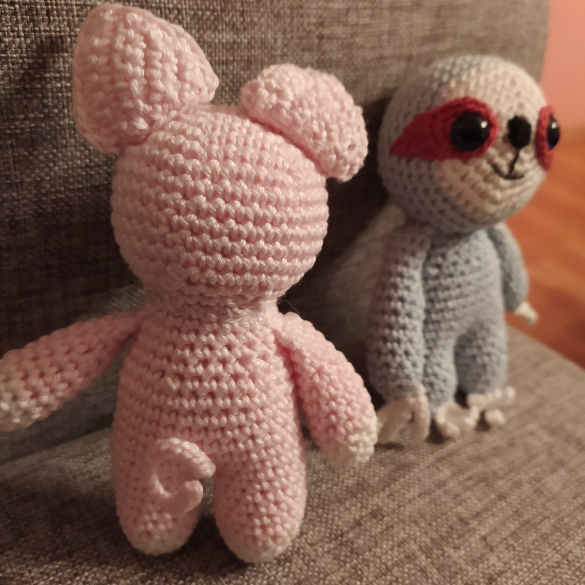 Háčkovaná zvířátka ze 100% bavlněné příze, bezpečnostní očka. Velikost cca 12 cm.
