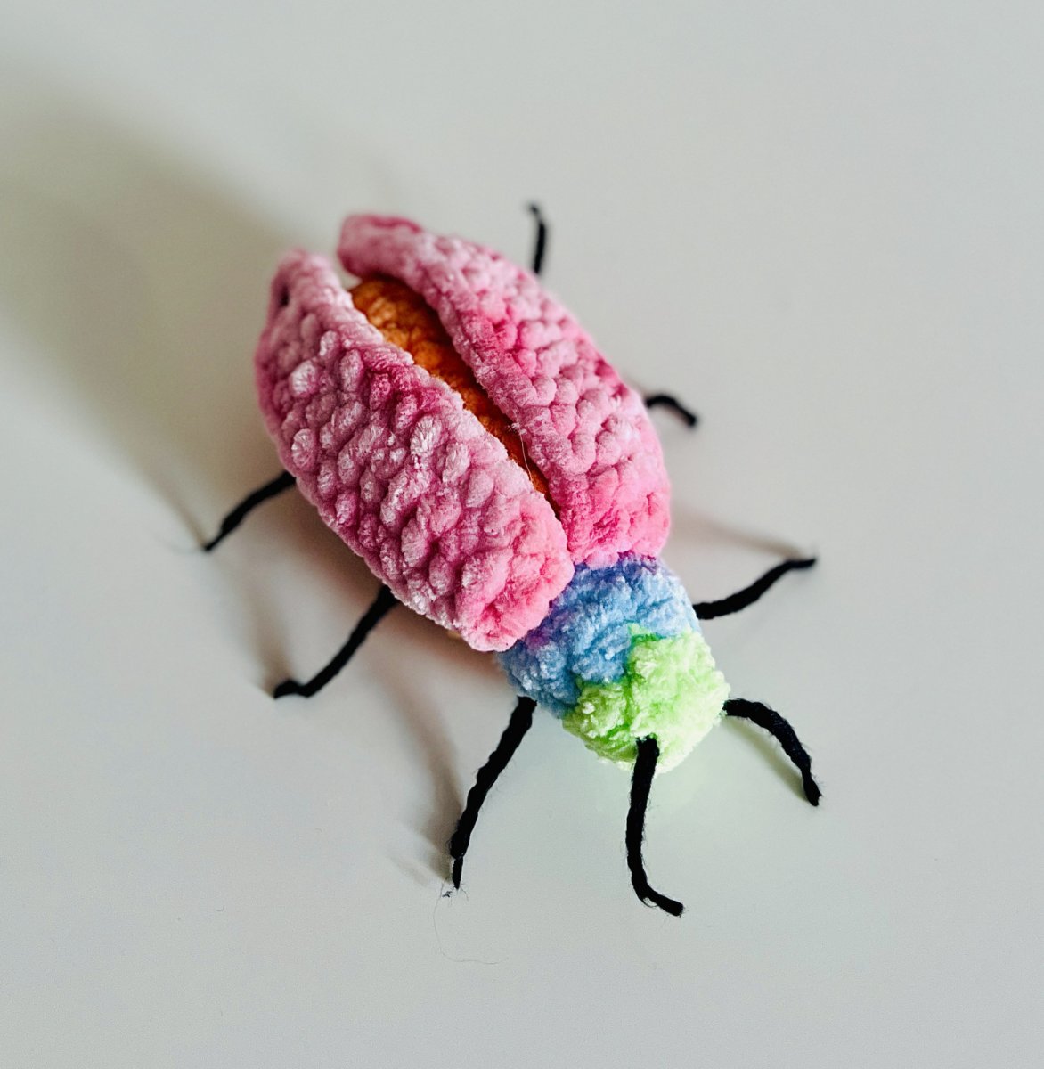 Roztomilý ručně háčkovaný brouček z hebké žinylkové příze, který potěší malé i velké milovníky originálních dekorací.