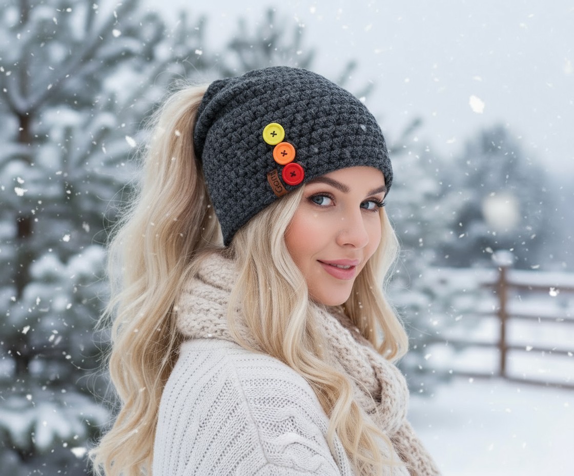 RUČNĚ A S LÁSKOU HÁČKOVANÁ ČEPIČKA JE VYROBENA Z KVALITNÍ AKRYLOVÉ PŘÍZE, KTERÁ JE VELMI PŘÍJEMNÁ NA DOTEK, NEŽMOLKATÍ A NEKOUŠE.
