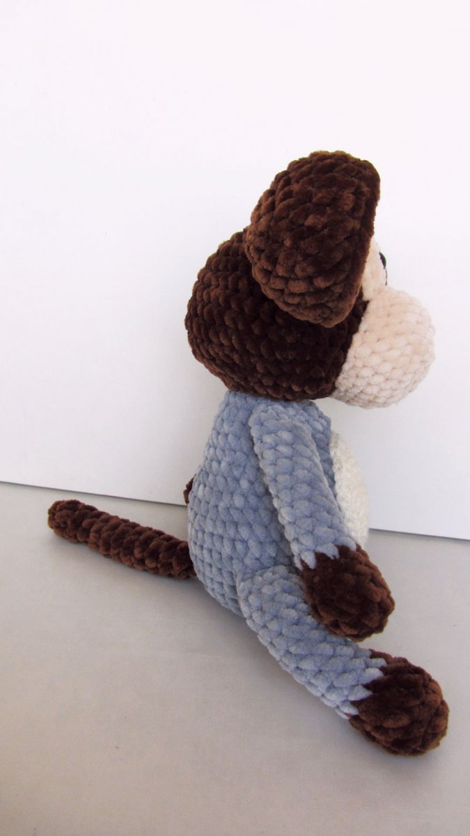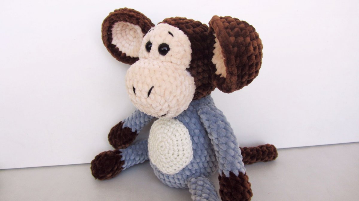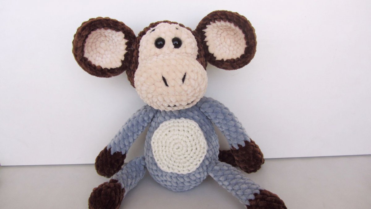 Háčkovaná hračka opičáka Filípka je zhotovena z polyesterové příze žinylky, vyplněná PES kuličkami, které jsou hypoalergenní. Opičkák má přišité nožičky, oči má bezpečnostní. Filípek vyrostl do výšky 29 cm.