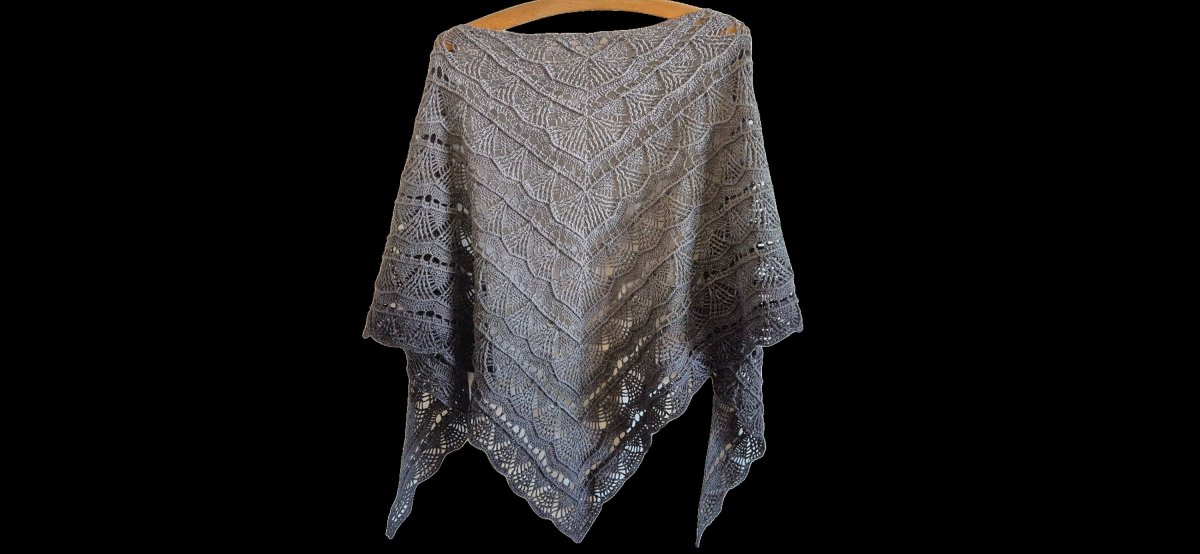 Šátek je v elegantní šedo černé barvě a velikost šátku je 208 x 145 x 80 cm.