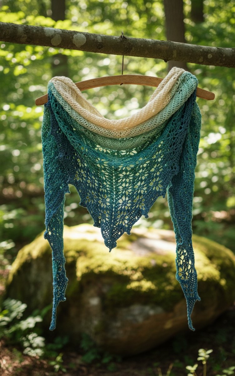 Barvy: Fascinující pomalý přechod (ombré) ze světlé krémové/béžové přes svěží mátovou a tyrkysovou až do sytě mořské modré.