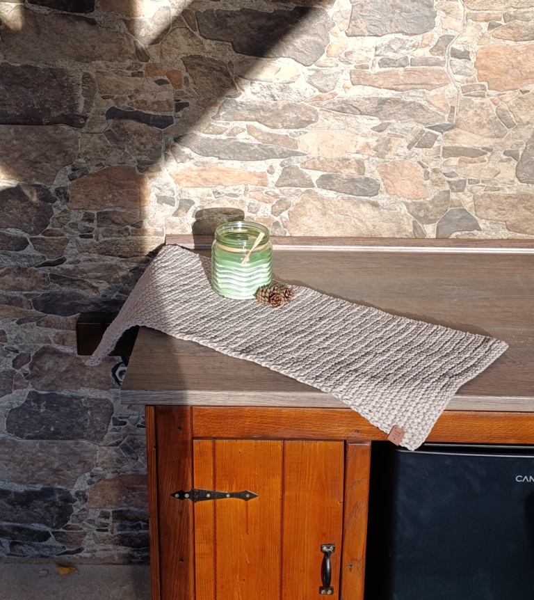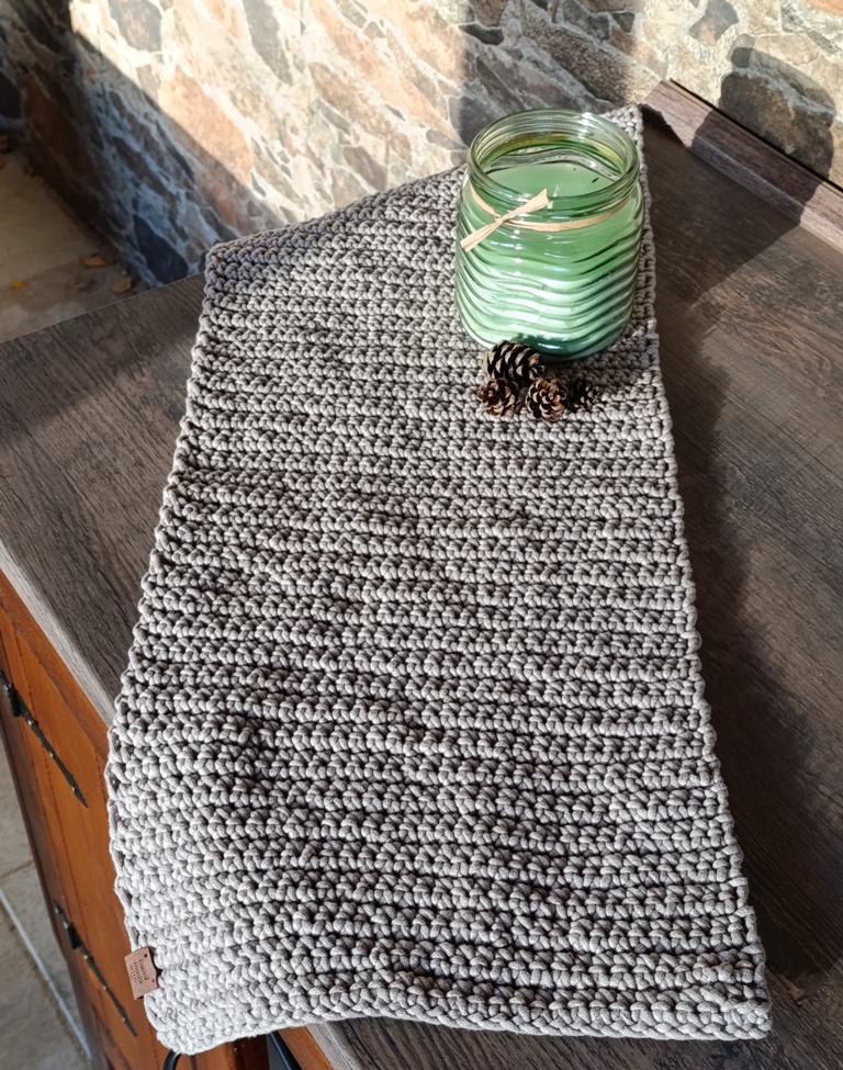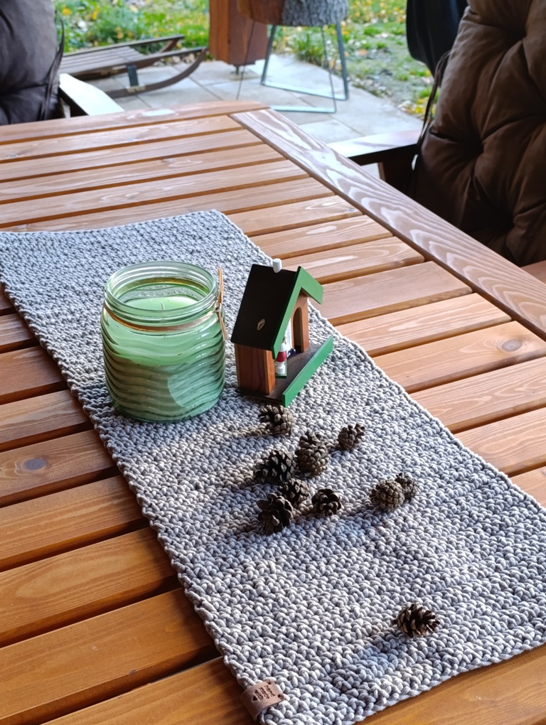 Ručně háčkovaný středový ubrus z bavlněných šňůr. Krásně doplní jídelní stůl. Můžete šetrně prát na 30°C a sušit nejlépe rozložené ve vodorovné poloze. Nedoporučuji sušit v sušičce.