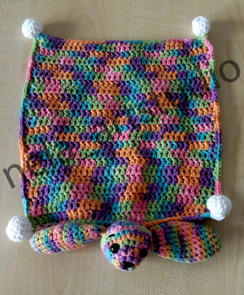 Usínáček zajíček háčkovaný přízí Crazy Jeans a Jeans.Háčkovaný háčkem 3,5 mm, vyplněn dutým vláknem. Obsahuje 2 ks bezpečnostních černých očí 8mm a čumák s bezpečnostní zarážkou proti vypadnutí.Velikost: cca 18,5 x 18,5 cm (rozměr čtverce).