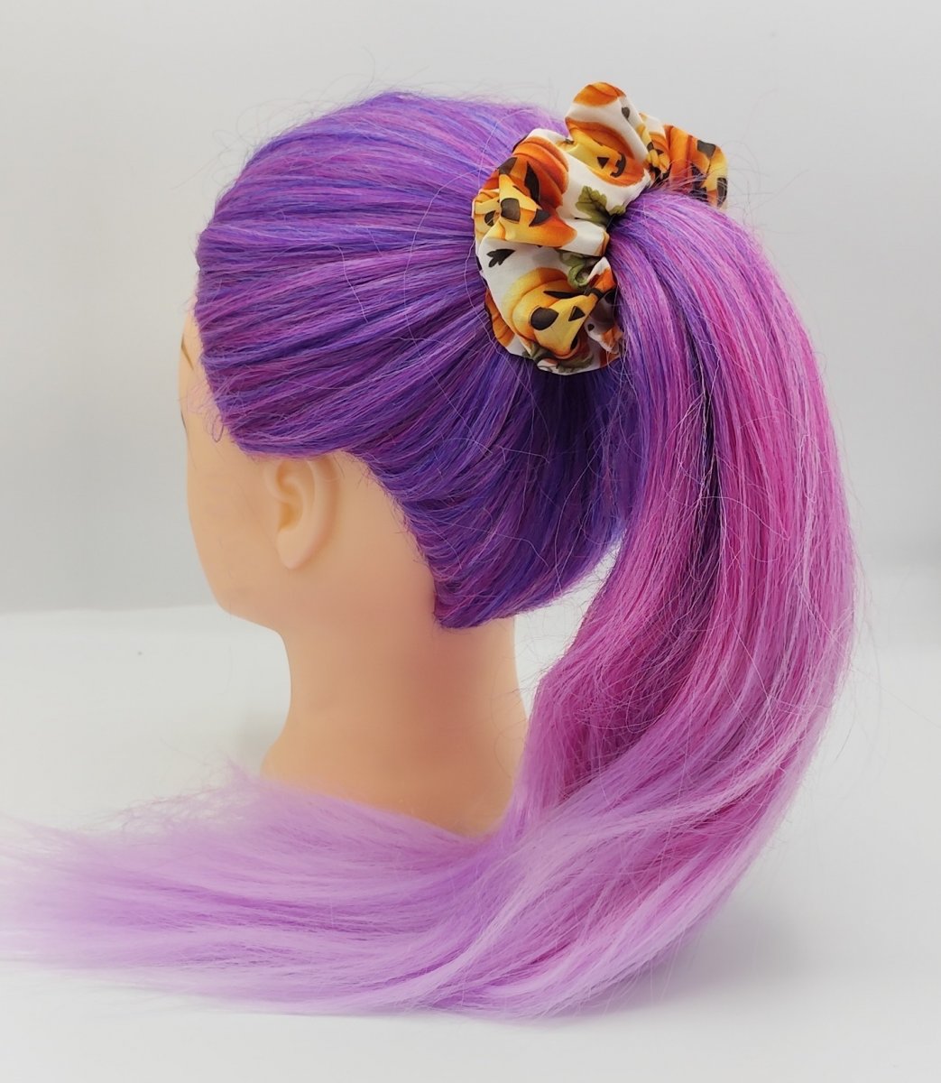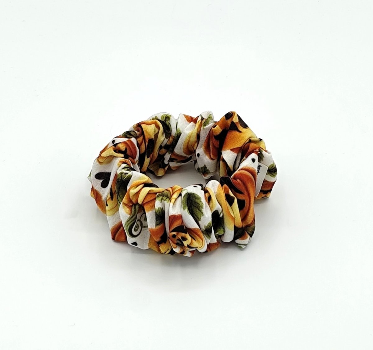 Dárková sada bavlněných scrunchies gumiček je nakombinovaná v halloweenských barvách.