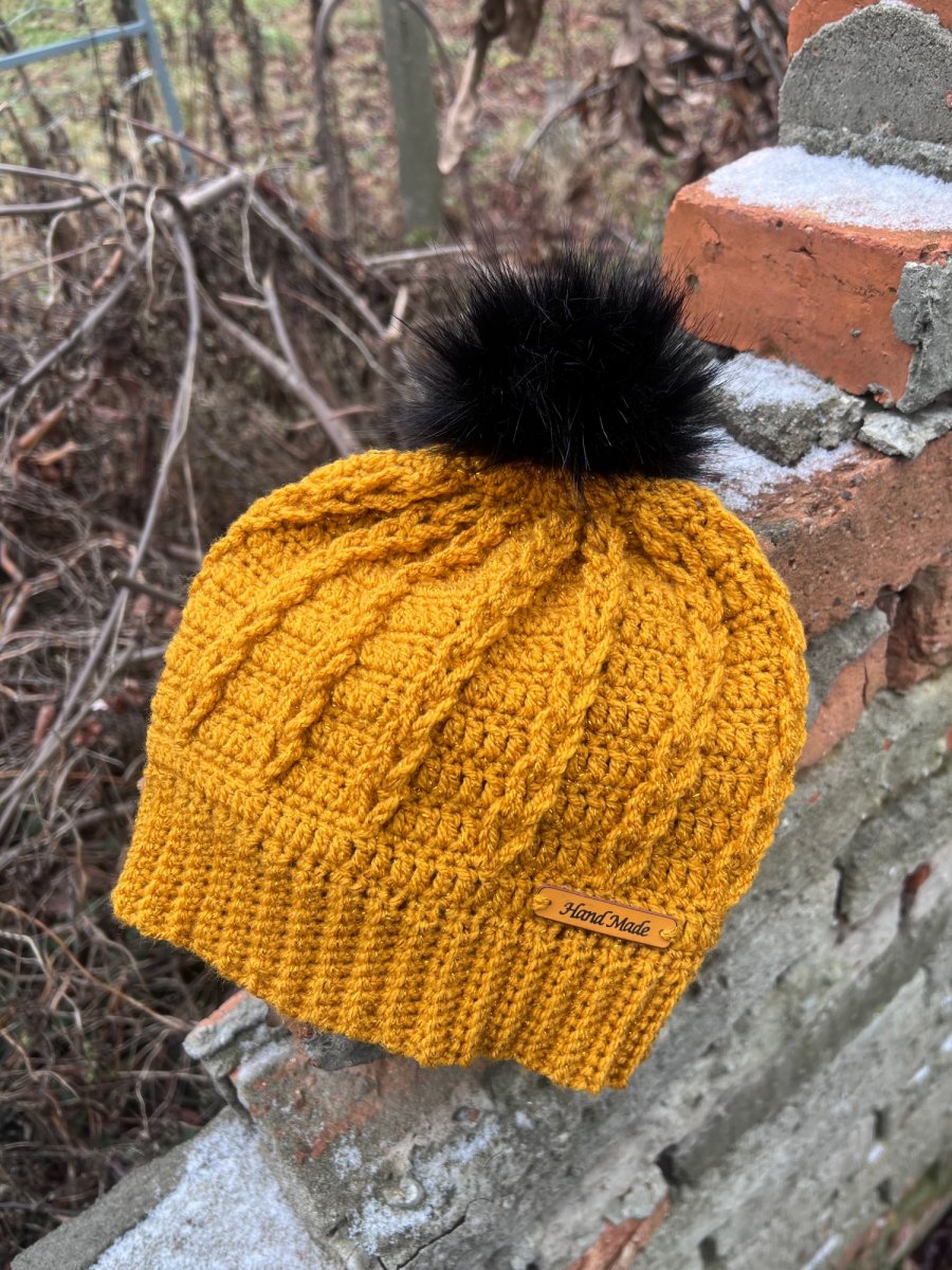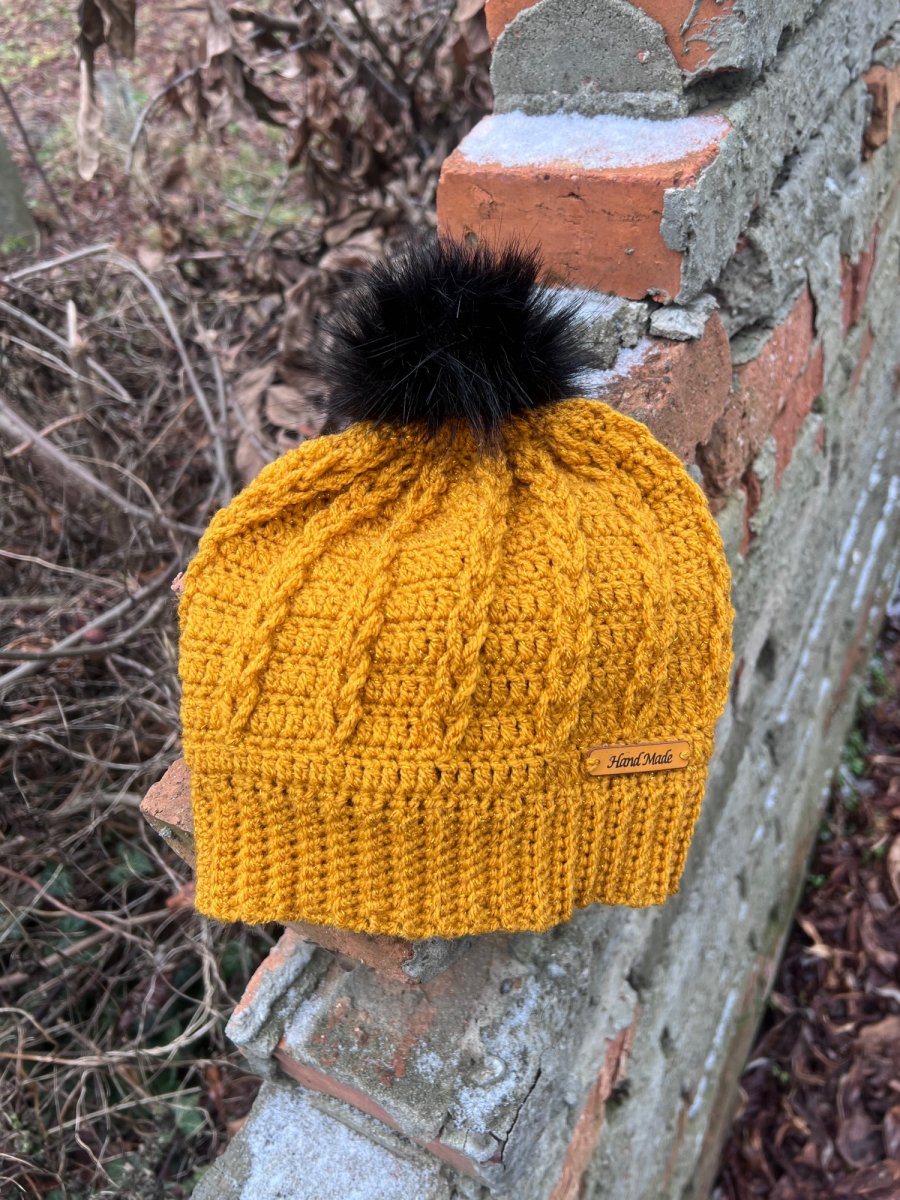 Šířka cca 22 cm (x2) - vhodná pro obvod hlavy do 56 cm, výška 22 cm, bambule má průměr cca 10 cm.