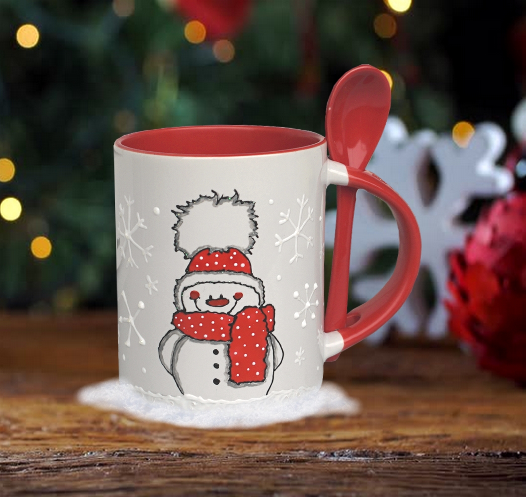 Rukojeť, vnitřek hrnku a lžička jsou červené od výrobce
