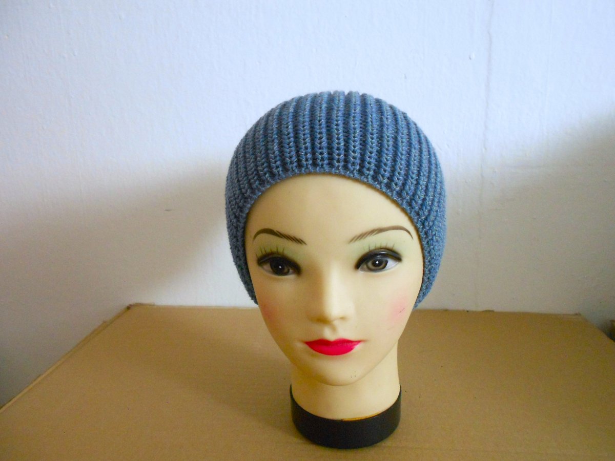 Strojově pletená, teplá, pružná čepice - hučka, 80%vlna, 20%akryl, výška 24 cm, obvod hlavy 54-58cm, modrá melír.
