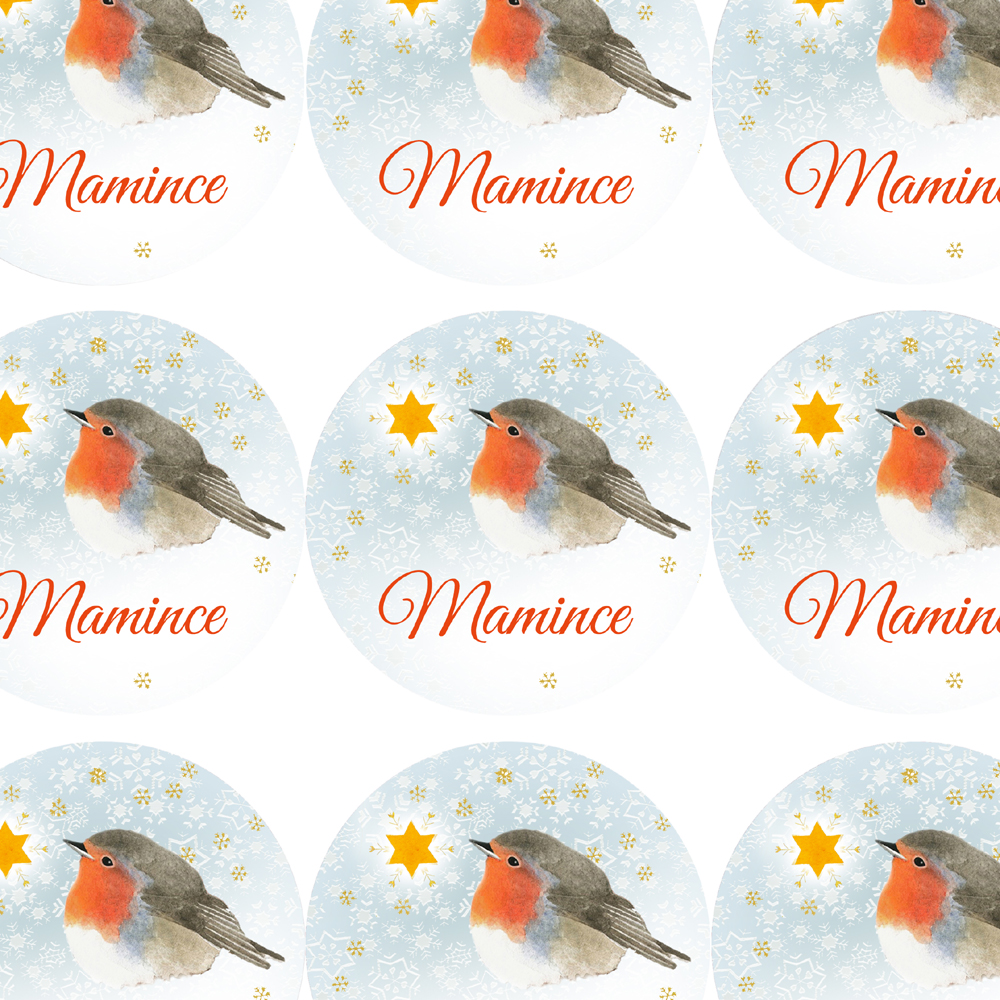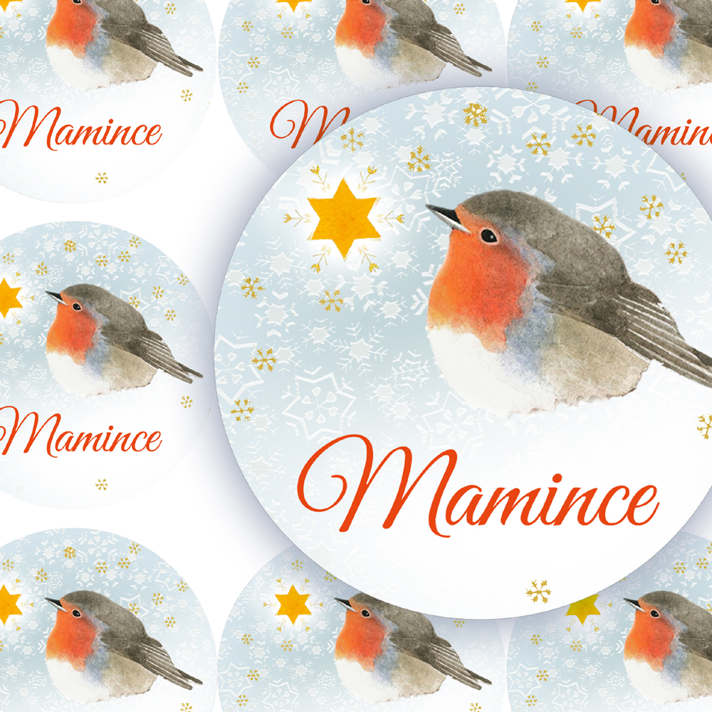 Autorské jmenovky - samolepky s motivy červenky a hvězdičky.