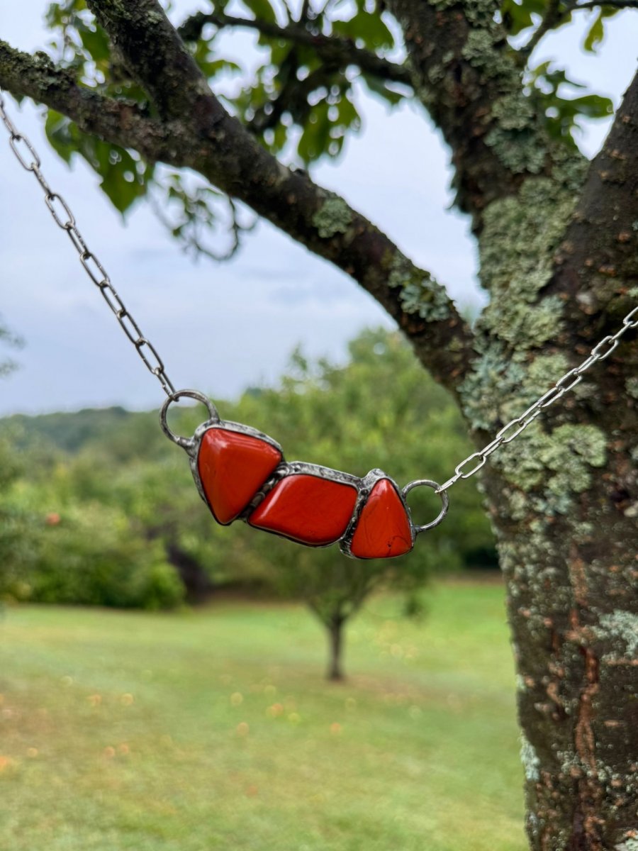 Náhrdelník s červeným JASPISEM. 3 kameny spojené dohromady v unikátní šperk.