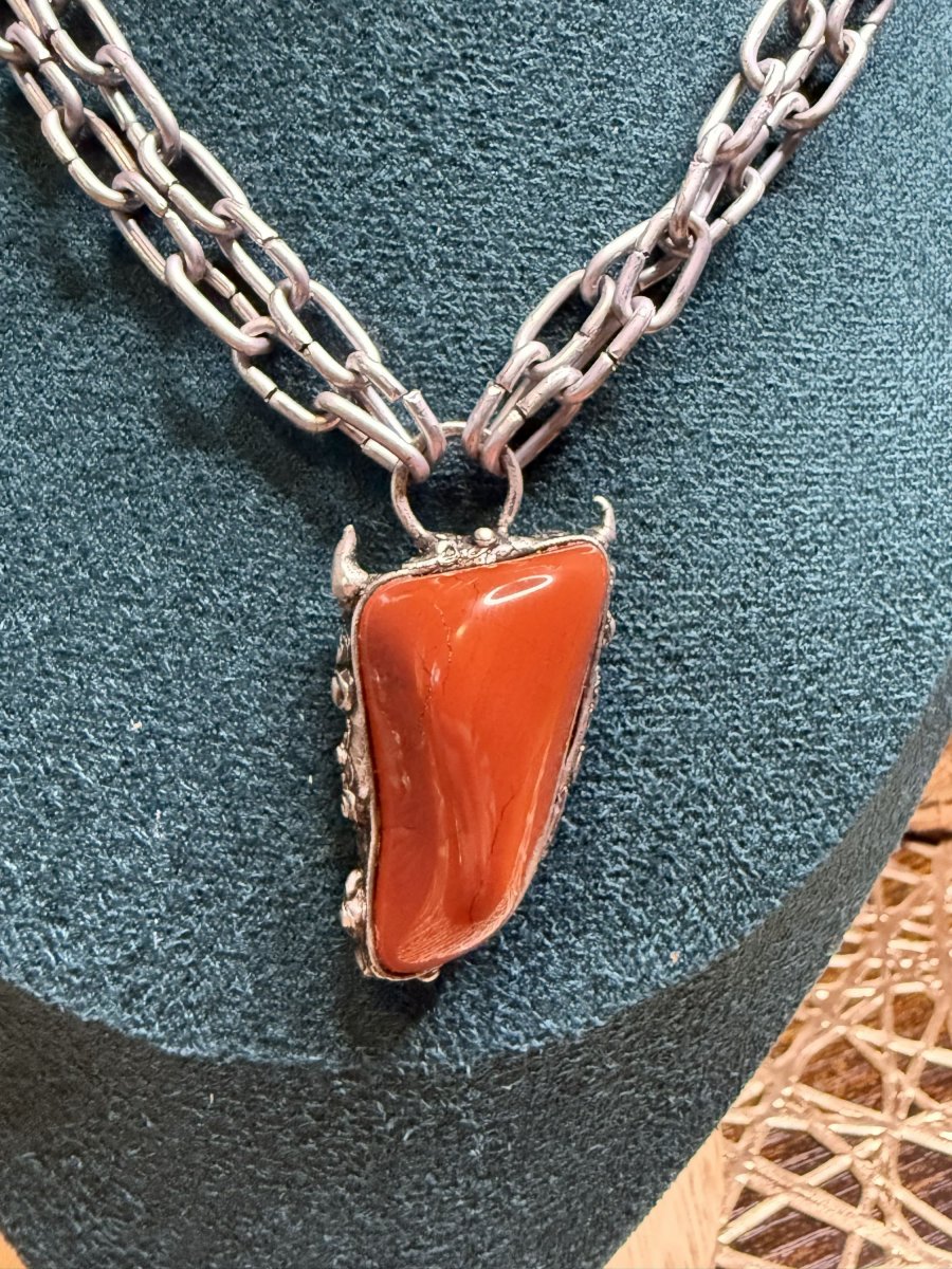 Choker s červeným JASPISEM, ve tvaru chilli papričky s malými růžky.