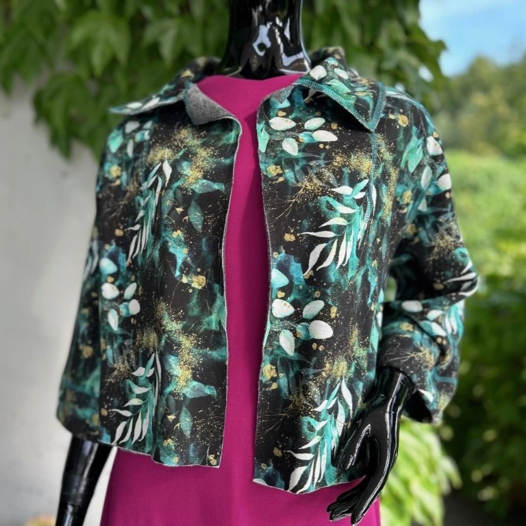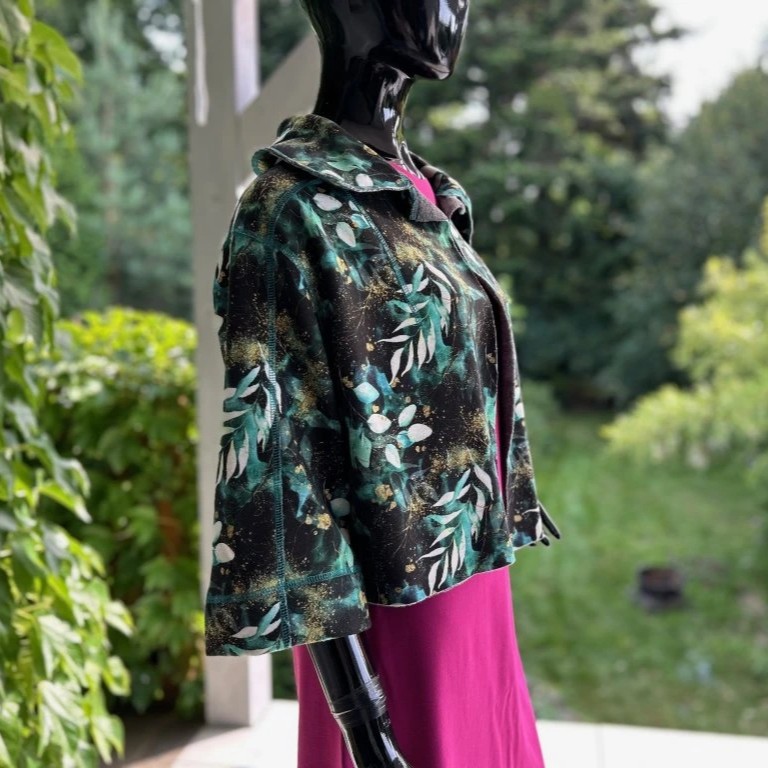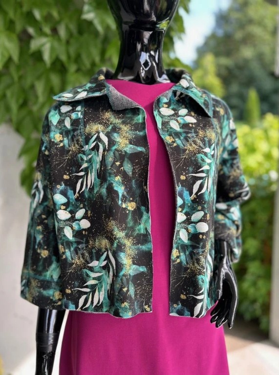 Krátký stylový kabátek, krásných vzorů. Je ušitý z příjemného materiálu alpenfleece, který má na rubové straně vlas a tím pádem plní jak funkci estetickou, tak praktickou. Hodí se kombinovat s jednobarevnými kousky, které zaručeně oživí.