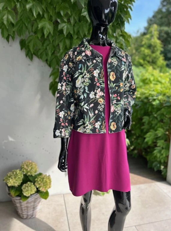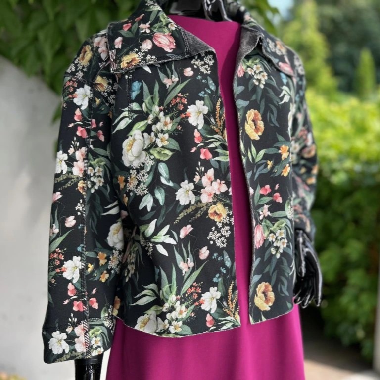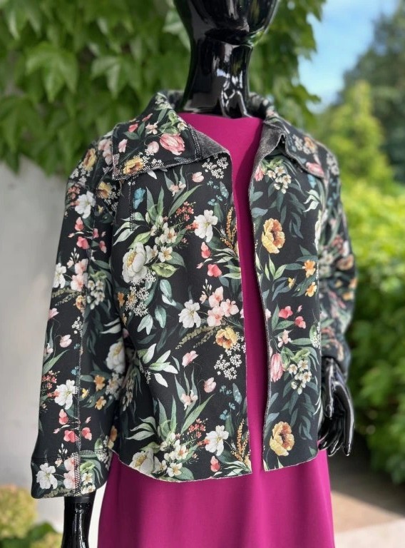 Krátký stylový kabátek, krásných vzorů. Je ušitý z příjemného materiálu alpenfleece, který má na rubové straně vlas a tím pádem plní jak funkci estetickou, tak praktickou. Hodí se kombinovat s jednobarevnými kousky, které zaručeně oživí.