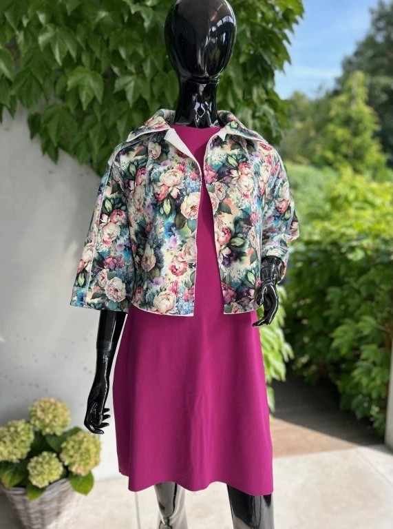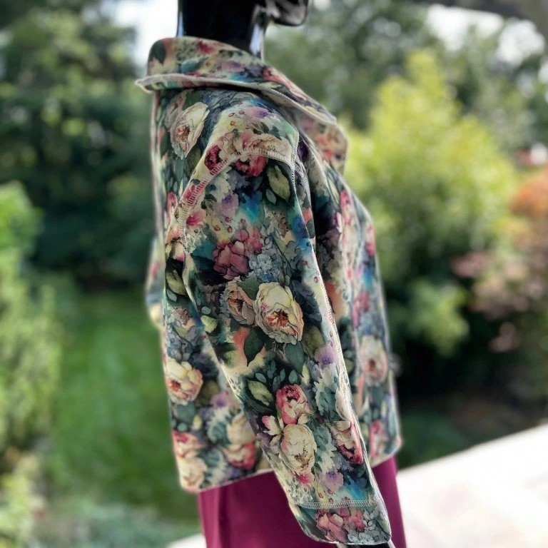 Krátký stylový kabátek, krásných vzorů. Je ušitý z příjemného materiálu alpenfleece, který má na rubové straně vlas a tím pádem plní jak funkci estetickou, tak praktickou. Hodí se kombinovat s jednobarevnými kousky, které zaručeně oživí.